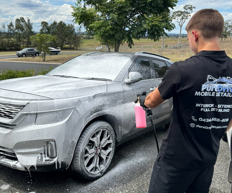 Snow foam pre-wash followed by a contact hand wash, wheels, tyres & arches deep cleaned, tyres dressed with a long lasting finish, bug and tar removal, exterior glass cleaned, hand dried.